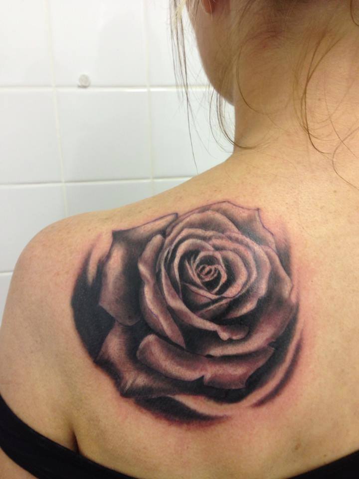 Black Rose Tattoo Cover Up On The Shoulder